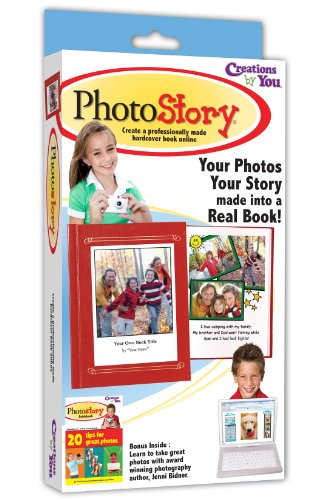 Create your own keepsake photo book! PhotoStory makes it easy to turn your memories into a published, archival quality photo book you'll treasure for a lifetime. Just lay out your photos on our design pages and write your story or the photo captions you want typeset. In addition to the washable markers provided, feel free to use your own stickers, stamps or other scrapbook materials. Send the finished pages to Creations by You in the postage paid envelope provided in the kit, or the book can be made entirely online using Internet drawing, writing and digital photo placement tools. In just a few weeks you'll receive back a beautiful, full sized, hardback book. PhotoStory is the most cost efficient and versatile personalized memory book available. A standard book includes 15 book pages, plus a title and dedication page. However, extra pages are included in the kit for making up to a 50-page, two-sided book. Our open layout structure provides a design freedom not available from any other book product. The low-priced extra book option allows for making books the entire family can enjoy. PhotoStory is perfect for anniversaries, milestone birthdays, family trips, family histories, special events and much, much more. It is also the first financially reasonable, high quality alternative to totally recreating those hard worked scrapbooks and photo albums. Kit Contains: Instructions Cover Pages (2) Additionals provided for mistakes Book Pages (50) Additionals provided for mistakes or for use as extra pages Order Form 10 Broadline washable markers Postage Paid Envelope Finished book is 8.5" x 11" hardbound archival quality book.
